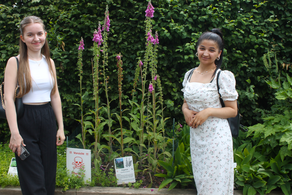 Vor dem giftigen Fingerhut mit seinen Digitalisglykosiden wird schon mittels Warnhinweis ausdrücklich hingewiesen, da schon 2-3 Blätter nach Verzehr tödlich enden können. Dazu referierte eindrucksvoll ein Schüler, während sich eine Schülerin der etwas harmloseren, aber sehr wirksamen Kamille zuwandte.
