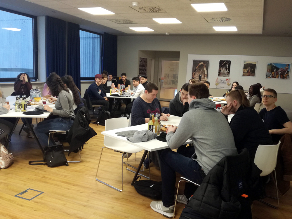Zum Abschluss des Tages stand eine Betriebsbesichtigung im Vordergrund. Insgesamt vier Auszubildende bereiteten diese vor und führten die Schüler durch das Gebäude. Von der Sortimentsgestaltung über die Produktentwicklung bis hin zur Warenbeschaffung konnten die Schüler heine kennenlernen. Im Kreativeinkauf wird z. B. das exklusive Sortiment der Mode- und Wohnwelten kreiert. Der Beschaffungseinkauf kümmert sich um die Umsetzung der Designs in den Produktionsländern und verantwortet die Entwicklung vom Prototypen bis zur fertigen Lieferung. Die Disposition ermittelt die optimale Liefermenge, um die Lieferbereitschaft für unsere Kundin sicherzustellen während der E-Commerce-Bereich ist für alle Online-Aktivitäten von heine verantwortlich ist. Hier arbeitet das Team tagtäglich daran, neue Zielgruppen zu erschließen und das Online-Geschäft als Kommunikations- und Absatzmedium weiter voran zu treiben.