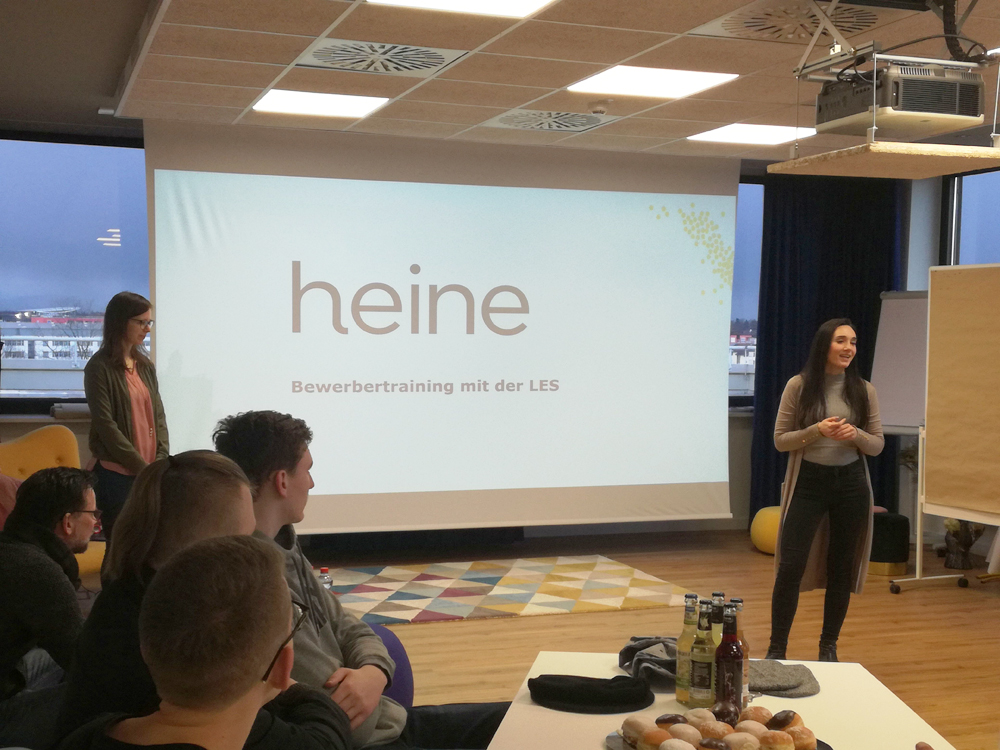 Wie die Form für ein Anschreiben und der Inhalt sein sollte, sind alles keine Geheimnisse, die können rein theoretisch auch im Internet nachgelesen werden. Aber der Tag bei heine und das, was dort gelernt wurde, bleibt im Gedächtnis. Die SchülerInnen lernten, sich so zu be-WERBEN, dass es zu ihnen und zum Unternehmen passt. Was ebenfalls allen großen Spaß gemacht hat und sehr deutlich geworden ist, war die gemeinsame Erarbeitung der eigenen Fähigkeiten. Oftmals wird in Bewerbungen von Teamfähigkeit, Zuverlässigkeit oder Hilfsbereitschaft geschrieben. Aber was genau versteht man darunter? Welche Fähigkeiten/nebenschulisches Engagement wird von den Personalern wie gewertet? Und wie kann ich z. B. in meiner Bewerbung positiv einbringen, dass ich regelmäßig auf meine kleinen Geschwister aufpasse? Wo habe ich eigentlich meine Kompetenzen, Stärken und Fähigkeiten? Welches Ziel habe ich?
